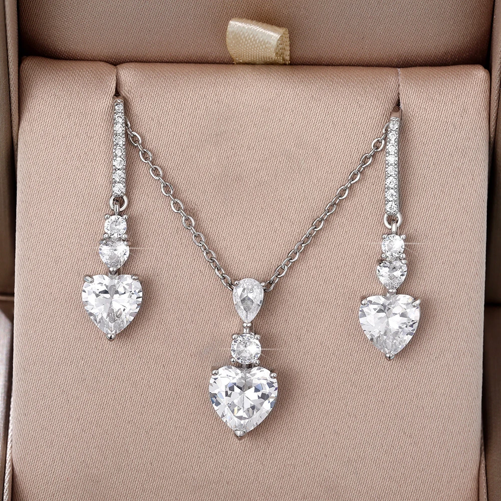 تصميم فاخر الخوخ القلب الزركون قلادة قلادة أقراط مجموعة مجوهرات رائعة الزفاف اكسسوارات الزفاف الذكرى هدايا